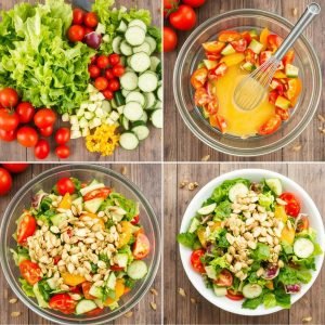 Denne salaten er en fast favoritt hjemme hos meg, spesielt på travle dager. Jeg liker å variere med hva jeg har i kjøleskapet – avokado er en fantastisk tilsetning hvis jeg har det tilgjengelig. Mitt beste tips er å bruke ferske, økologiske grønnsaker for å få frem den beste smaken. En gang tok jeg med denne salaten på piknik, og alle spurte etter oppskriften. Det fine med den er at den kan tilpasses alle preferanser, og den passer både som hovedrett og som tilbehør til grillet kjøtt eller fisk.