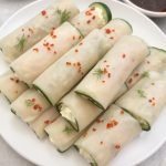 - Rull forsiktig sammen agurkskivene til små wraps.