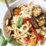 Denne retten er inspirert av Middelhavet. Jeg lagde den første gangen da jeg ville lage en sunn og smakfull middag. Fullkornspasta med grillede grønnsaker har blitt en favoritt hjemme. Auberginen og zucchini gir en røykaktig smak som passer perfekt med sausen.