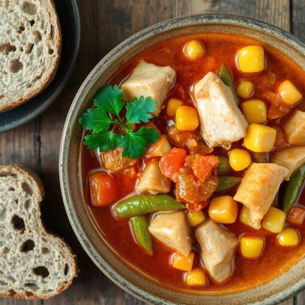 Brunswick-gryten byr på en unik kombinasjon av teksturer og smaker. Kyllingen blir saftig og mør, og grønnsakene, som gulrøtter og sellerirot, tilfører både sødme og en myk konsistens etter å ha absorbert den rike tomatsausen. Maiskornene gir små lommer av sødme, mens grønne bønner tilfører en lett sprøhet som kontrast. Sausen er fyldig og velbalansert, takket være en miks av røkt paprika og tørket timian som gir et snev av varme. Hver skje føles som en smaksreise som kombinerer det søte, salte og krydrede i perfekt harmoni.