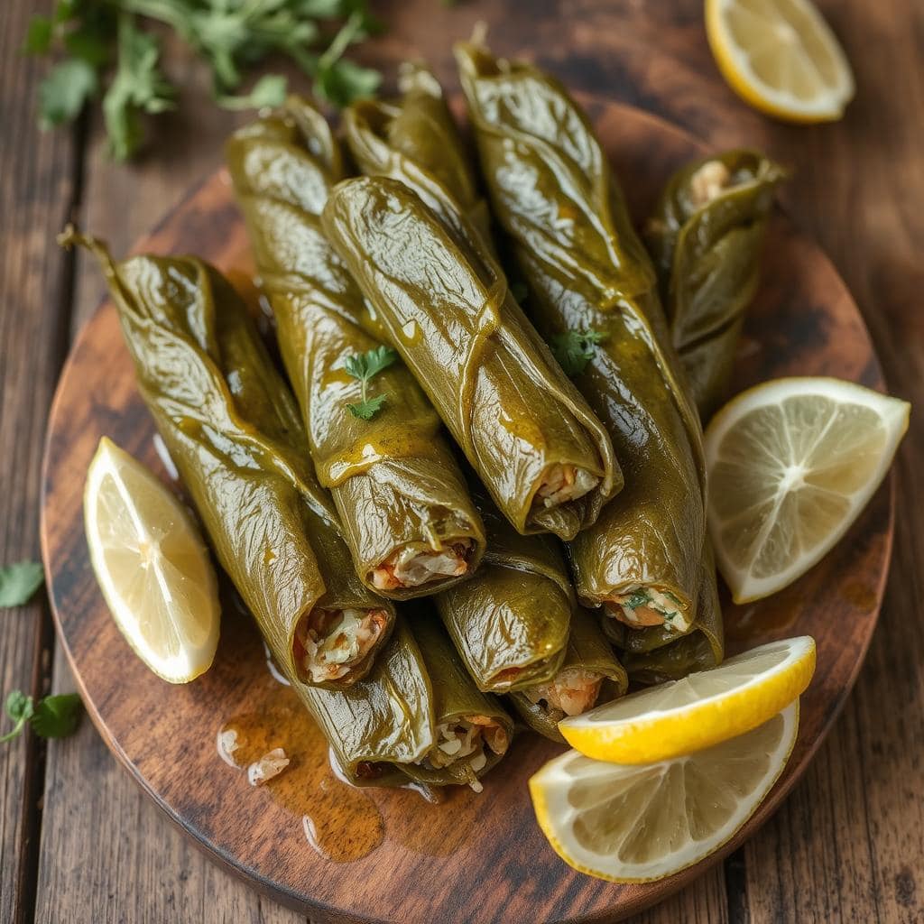Dolmades, eller fylte vinblader, er en klassisk rett med røtter i Middelhavsområdet, spesielt knyttet til gresk og tyrkisk kjøkken. Denne retten daterer seg tilbake til det osmanske riket, der vinblader ble brukt til å pakke inn smakfulle blandinger av ris, urter og kjøtt. Dolmades har blitt et symbol på tradisjonelle familieoppskrifter, ofte servert som en del av mezébordet eller som en forrett. Det er en rett som både fascinerer med sin unike presentasjon og sin balanserte, aromatiske smak.