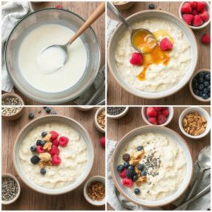 Glutenfri grøt har sine røtter i tradisjonelle frokostoppskrifter fra hele verden, men har fått en moderne vri for å møte behovene til dem med glutenintoleranse og de som ønsker et sunnere kosthold. Denne oppskriften er inspirert av barndommens varme frokoster, men med sunne ingredienser som mandelmelk og friske bær. Jeg begynte å eksperimentere med glutenfri grøt da en venn introduserte meg for bokhvete som alternativ. Det har blitt en hverdagsfavoritt som er lett å lage, næringsrik og passer perfekt for travle morgener.