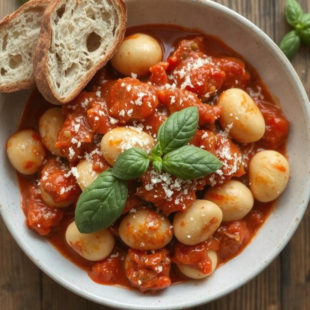 Gnocchi, en tradisjonell italiensk rett, er kjent for sin myke, puteaktige tekstur og sin evne til å absorbere smaker fra sauser. Denne oppskriften med tomat- og basilikumsaus feirer det enkle og rene ved det italienske kjøkkenet, hvor ferske ingredienser står i fokus. Retten har sin opprinnelse i Nord-Italia, der gnocchi ble laget av poteter eller semolina, og den har siden blitt en favoritt verden over.