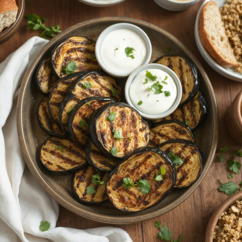 - Servering: Legg de grillede aubergineskivene på et serveringsfat. Dryss over hakket persille eller koriander og press litt sitronsaft over før servering.