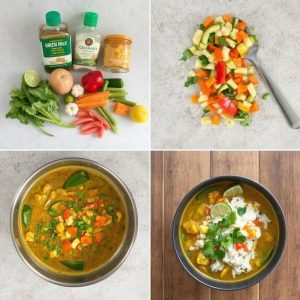 Grønn curry byr på en intens og aromatisk smak, med en herlig balanse mellom søtlig kokosmelk, krydret grønn chili og friskheten fra lime. Teksturen er fløyelsmyk, takket være kokosmelken, mens sprø grønnsaker som gulrøtter og brokkoli gir en kontrastfull crunch. Currypastaens krydder gir retten dybde, mens lime tilfører en syrlig friskhet.