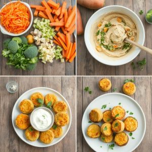 Jeg lager ofte disse grønnsaksbitene når jeg ønsker en rask og sunn middag. De er perfekte når barna har venner på besøk, fordi de både er morsomme å spise og enkle å like. Et tips jeg ofte bruker, er å tilsette litt spinat eller revet ost i blandingen for ekstra smak. Jeg husker spesielt en gang da vi hadde disse med på piknik – alle barna elsket dem, og de voksne spurte etter oppskriften. Dippen er også svært allsidig, og jeg bruker den ofte som tilbehør til andre retter som wraps eller salater.