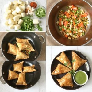- Stek samosaene i ovnen i 15–20 minutter, eller til de er gylne og sprø.