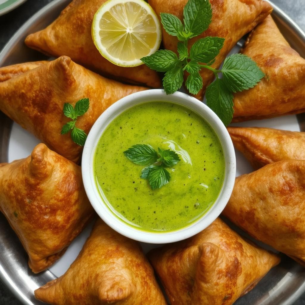 Jeg husker første gang jeg laget grønnsakssamosaer til en vennefest – de ble en umiddelbar suksess! Jeg elsker hvordan du kan tilpasse oppskriften ved å tilsette forskjellige grønnsaker eller krydder. Et tips er å fryse samosaene før steking, slik at de holder formen bedre. Myntesausen minner meg om varme sommerkvelder og gir en perfekt friskhet til den krydrede smaken.