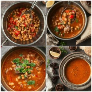 Harira er en klassisk marokkansk suppe, ofte tilberedt under Ramadan som en del av iftar-måltidet etter faste. Denne retten kombinerer linser, kikerter, tomater og kjøtt (ofte lam eller kylling) med et rikt utvalg av krydder. Den er kjent for sin fyldige smak og næringsrike innhold, noe som gjør den til en ideell rett for både hverdagsmiddager og spesielle anledninger. Jeg elsker Harira for dens varme, mettende karakter og autentiske smaksprofil.