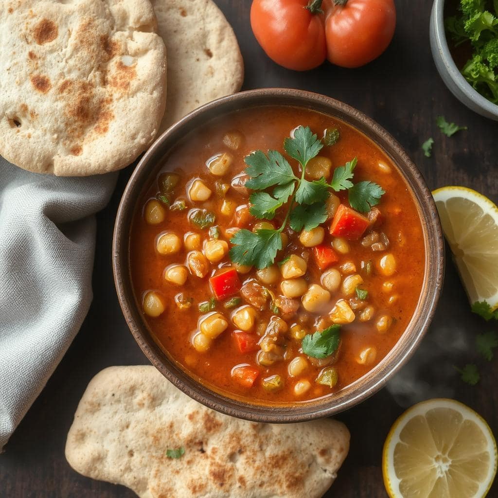 Harira er en klassisk marokkansk suppe, ofte tilberedt under Ramadan som en del av iftar-måltidet etter faste. Denne retten kombinerer linser, kikerter, tomater og kjøtt (ofte lam eller kylling) med et rikt utvalg av krydder. Den er kjent for sin fyldige smak og næringsrike innhold, noe som gjør den til en ideell rett for både hverdagsmiddager og spesielle anledninger. Jeg elsker Harira for dens varme, mettende karakter og autentiske smaksprofil.