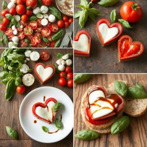 Caprese har alltid vært en av mine favoritter, men jeg ville gjøre den litt mer leken og dekorativ. Jeg husker første gang jeg serverte disse hjerteformede bitene til en vennemiddag, og de forsvant fra fatet nesten umiddelbart. De er enkle å lage, men ser så imponerende ut, noe som gjør dem perfekte til en romantisk middag eller et koselig tapasbord. Jeg varierer ofte oppskriften med cherrytomater i stedet for store tomater, eller jeg tilsetter avokado for ekstra kremet tekstur. Noen ganger bytter jeg ut balsamicoeddik med sitronsaft for en friskere vri.
