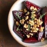 Overfør rødbetene til et serveringsfat. Dryss over friske urter og ristede nøtter for ekstra smak og tekstur.