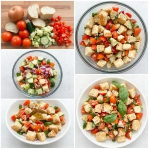 Panzanella er en klassisk italiensk bonderett som opprinnelig ble laget for å bruke opp tørt brød. Den stammer fra Toscana, men har spredt seg til flere regioner i Italia. Retten ble tradisjonelt laget med brød og løk, men i moderne tid har saftige tomater, agurk, og basilikum blitt vanlige tillegg. Det som gjør Panzanella så populær er dens enkelhet og evne til å fremheve smaken av ferske ingredienser, spesielt i sommersesongen når tomater og agurker er på sitt beste. Jeg elsker å lage denne salaten på varme sommerdager når man ønsker noe lett, men smakfullt.