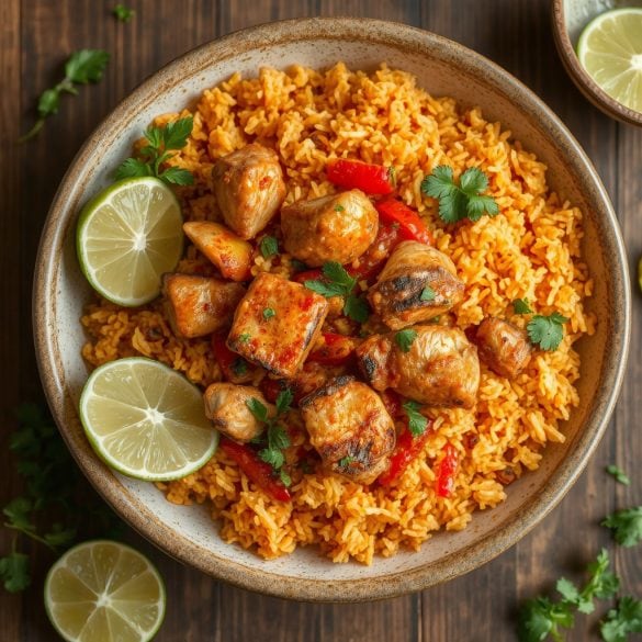 - Servering: Server jollof-ris i dype tallerkener, topp med frisk koriander og en limebåt.
