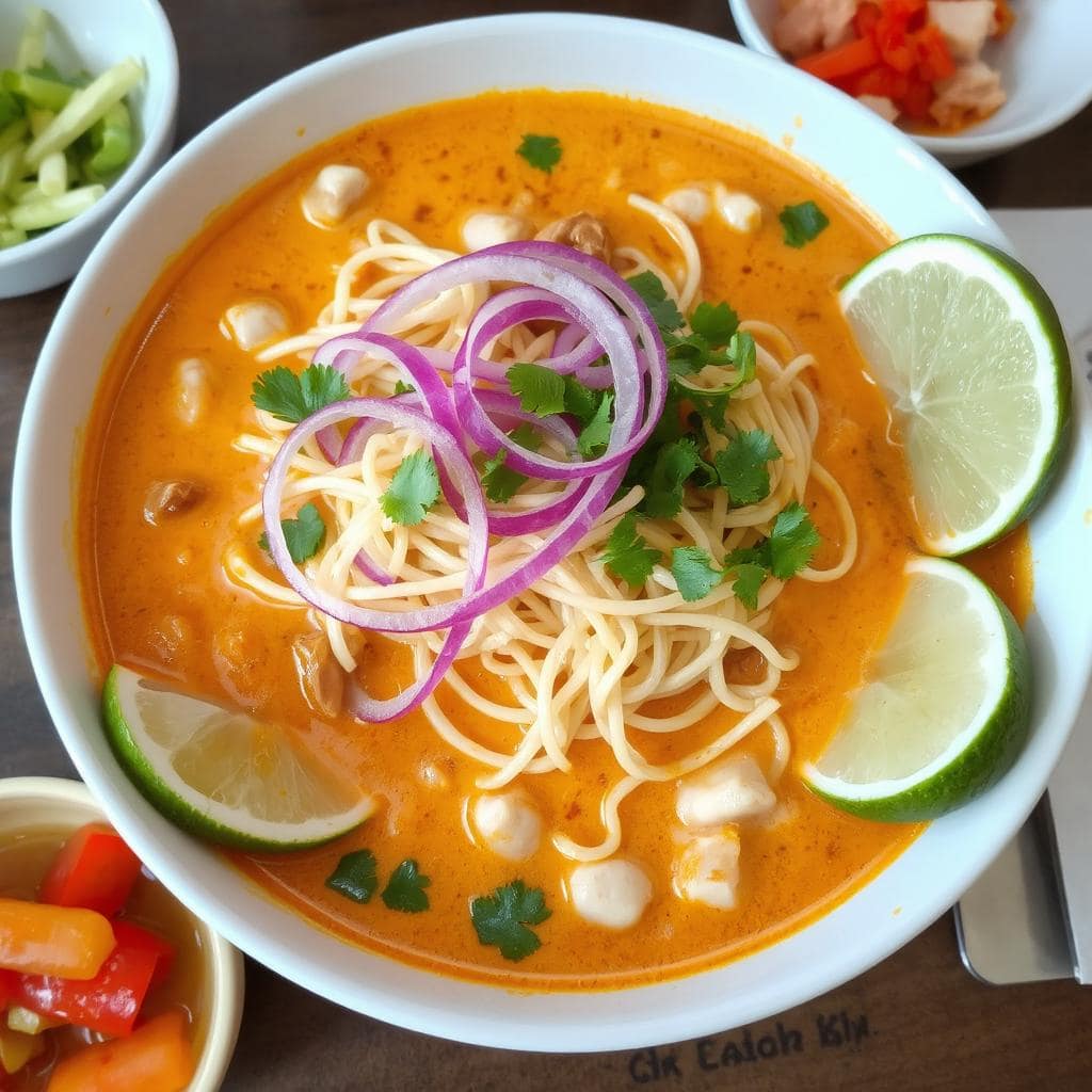 Jeg oppdaget Khao Soi under en ferie i Chiang Mai, og det var kjærlighet ved første bit. Nå lager jeg det hjemme som en luksusmiddag. Jeg anbefaler å bruke ferske eggnudler for den autentiske smaken, og om du vil eksperimentere, kan du prøve tofu eller reker som alternativ til kylling. Et tips er å tilpasse krydderet etter smak, spesielt om du serverer til barn. Sprø nudler kan enkelt lages ved å fritere noen av nudlene før koking – en detalj som gjør retten uimotståelig!