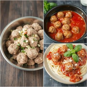 - Lag Kjøttbollene: Bland kjøttdeig, egg, brødrasp, hvitløk, persille, salt og pepper i en bolle. Form små kjøttboller med hendene.