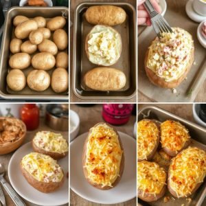 Kort Historie: Bakte poteter har vært en klassiker i mange kulturer, kjent for sin allsidighet og enkelhet. Varianten med kremet fyll og skinke har blitt spesielt populær. Den kombinerer mykheten til potetene med det salte, smakfulle fyllet. Jeg elsker hvordan denne retten er både enkel å lage og utrolig tilfredsstillende.