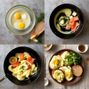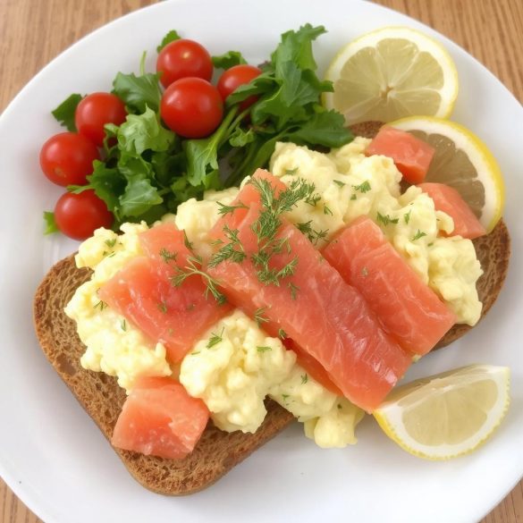 Eggerøre med røykelaks har en uimotståelig kombinasjon av silkemyke egg og den fyldige, salte smaken av laksen. Når jeg lager denne retten, elsker jeg hvordan urtene tilfører en frisk, grønn smak som balanserer de kremete eggene og den røykaromatiske laksen. Konsistensen er nøkkelen her – de fløyelsmyke eggene skal nesten smelte i munnen, mens røykelaksen gir et lett tyggemotstand. Servering med grovt brød tilfører en herlig sprøhet som gjør hver bit perfekt balansert.