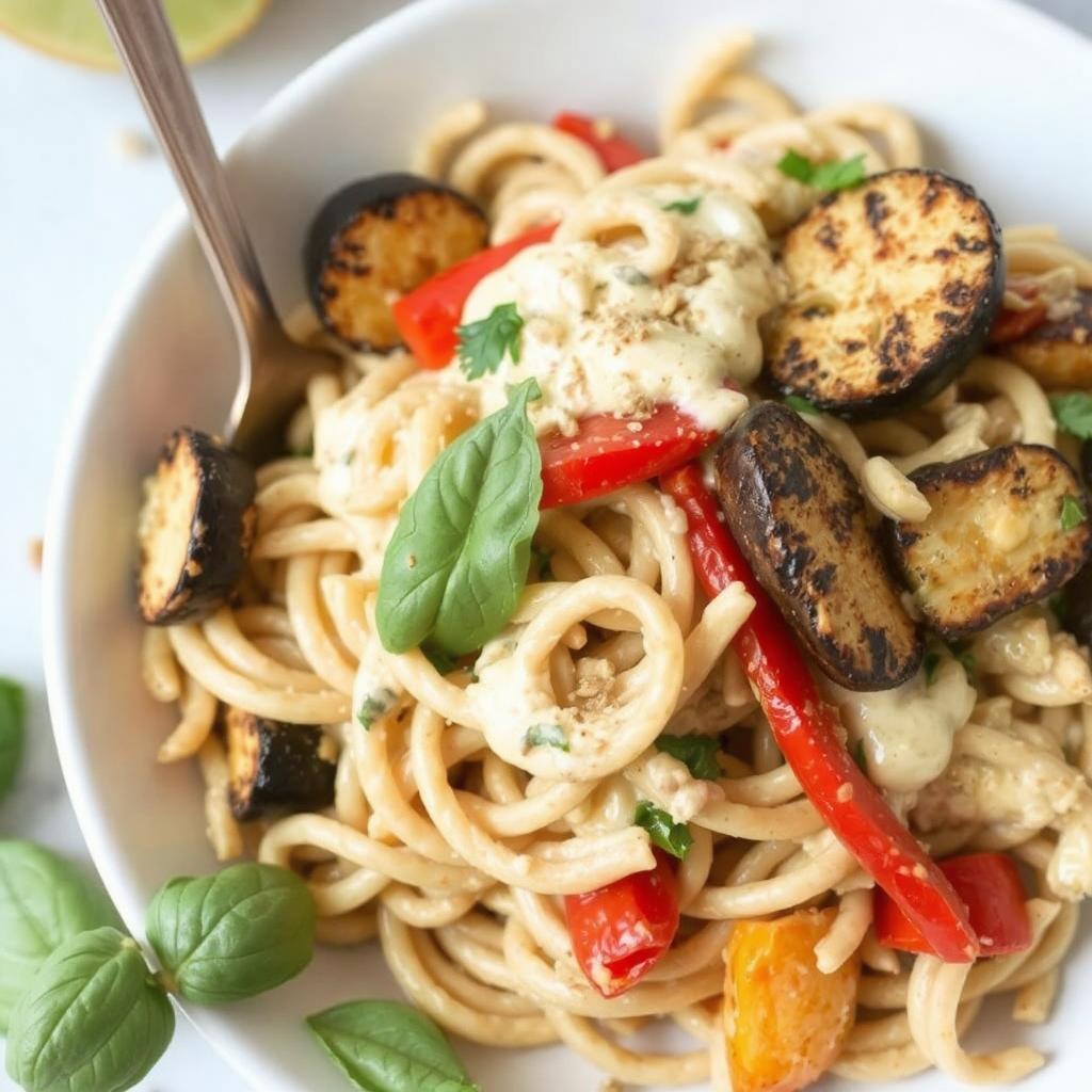 Denne retten er inspirert av middelhavskosten. Jeg oppdaget den da jeg lette etter en sunn og smakfull middag. Fullkornspasta med grillede grønnsaker ble raskt en favoritt. Aubergine og squash tilfører en røyksmak, og pastaen binder alt sammen. Jeg ble så glad i denne retten at jeg lager den jevnlig hjemme.