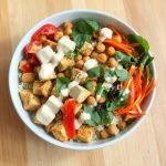 - Stek tofu: Varm olivenolje i en stor stekepanne. Stek tofubitene på middels varme i 5–7 minutter til de er gyldne på alle sider. Sett til side.