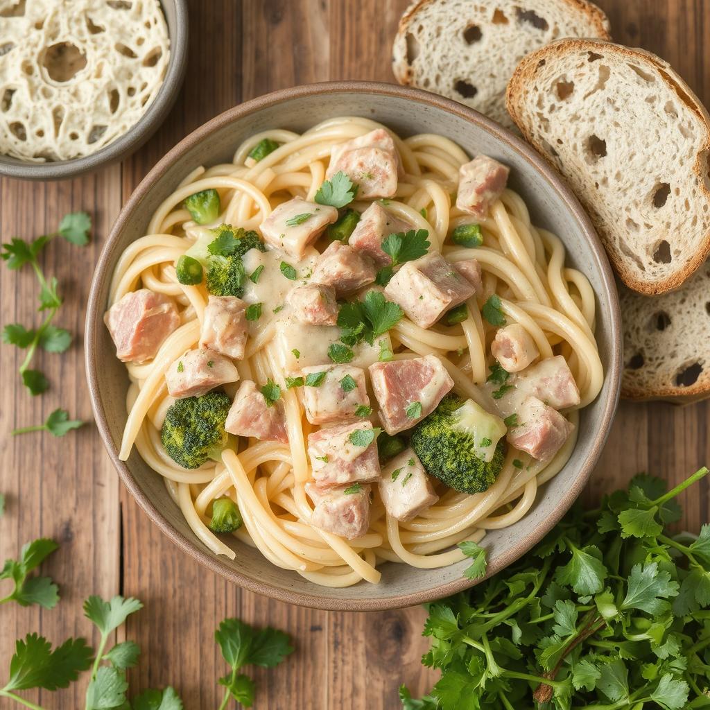 Jeg har alltid hatt et nært forhold til denne retten, og jeg husker første gang jeg laget den for familien. Jeg valgte å bruke fullkornspasta og plantebasert fløte for å gjøre retten litt sunnere, og det ble en umiddelbar suksess. Et tips jeg har er å bruke rikelig med grønnsaker – brokkoli gir både en fin tekstur og en frisk smak som passer perfekt til sausen. Jeg har også eksperimentert med å tilsette små biter av paprika eller spinat for ekstra farge og næring. Jeg liker å servere retten med en frisk salat for å gi en fin balanse til den kremete smaken.
