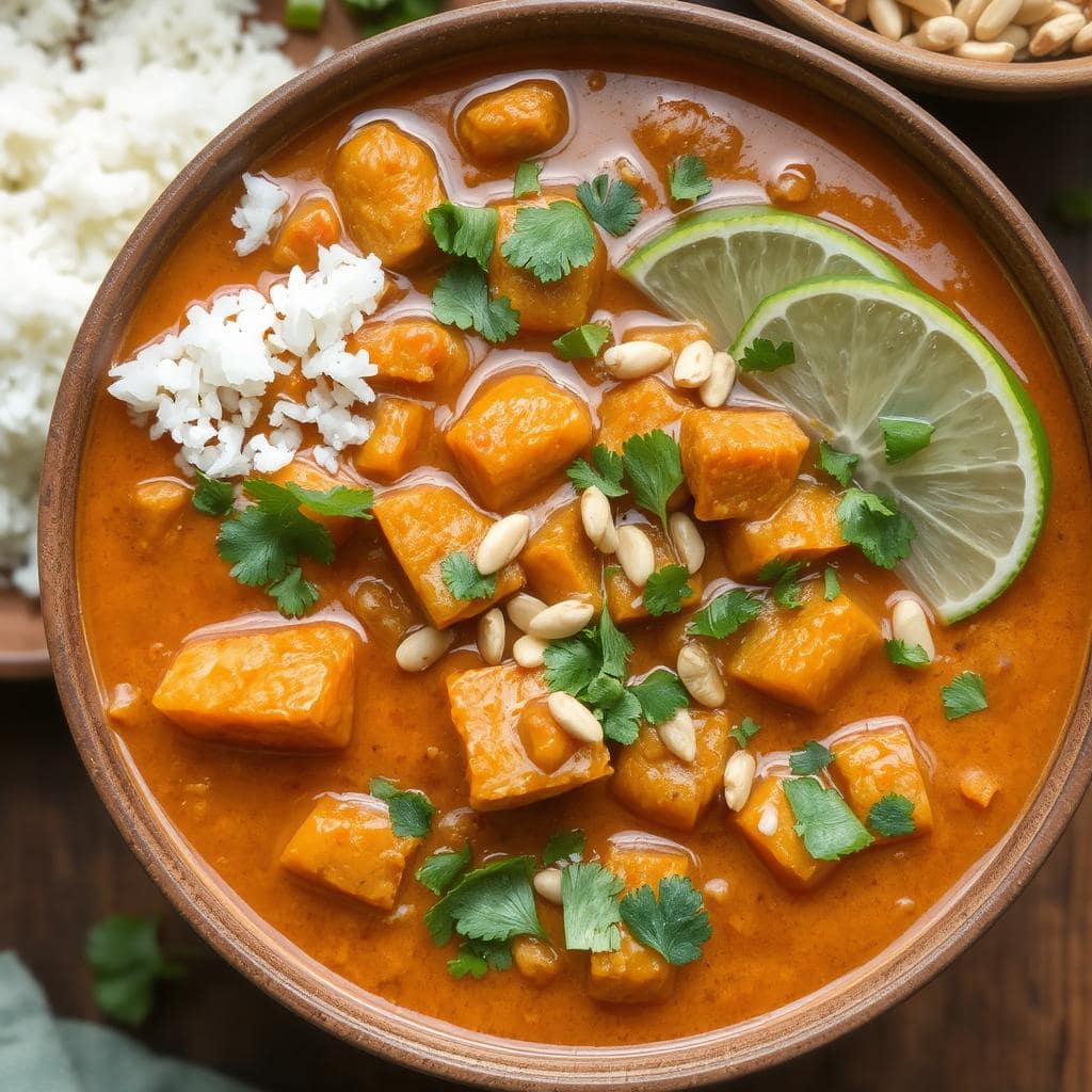 Denne retten har blitt en av mine favoritter på travle ukedager! Jeg elsker å bruke crunchy peanøttsmør for litt ekstra tekstur, og jeg serverer den alltid med dampet ris eller quinoa for å gjøre måltidet komplett. Et lite dryss av limejuice og friske korianderblader rett før servering gir gryten en nydelig friskhet. For ekstra protein kan du tilsette kikerter eller linser.