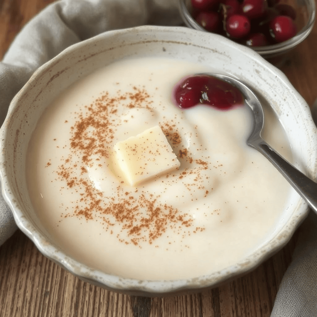 Når grøten serveres varm, fyller den rommet med duften av rømme og et hint av kanel – en duft som vekker minner om høytid og samvær rundt bordet. Teksturen er tykk, men likevel lett å røre i, med en glatt overflate som gir et innbydende førsteinntrykk. Server rømmegrøten med et dryss av kanel og litt smør eller plantebasert margarin, og gjerne med en skje tyttebærsyltetøy for ekstra smakskontrast.