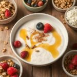 Denne syrlige grøten med yoghurt er inspirert av nordiske frokosttradisjoner der enkelhet og friskhet står i fokus. Jeg begynte å eksperimentere med yoghurt som topping for grøt da jeg ønsket noe lettere og friskere enn klassiske smør- eller sukkerbaserte alternativer. Kombinasjonen av kremet grøt og syrlig yoghurt med friske bær gir både en visuell og smakfull opplevelse. Det er blitt en favoritt i hjemmet vårt, spesielt om sommeren, da den føles lett, næringsrik og energigivende. Det er en oppskrift som enkelt kan tilpasses etter sesong og ingredienser du har tilgjengelig.