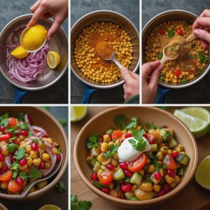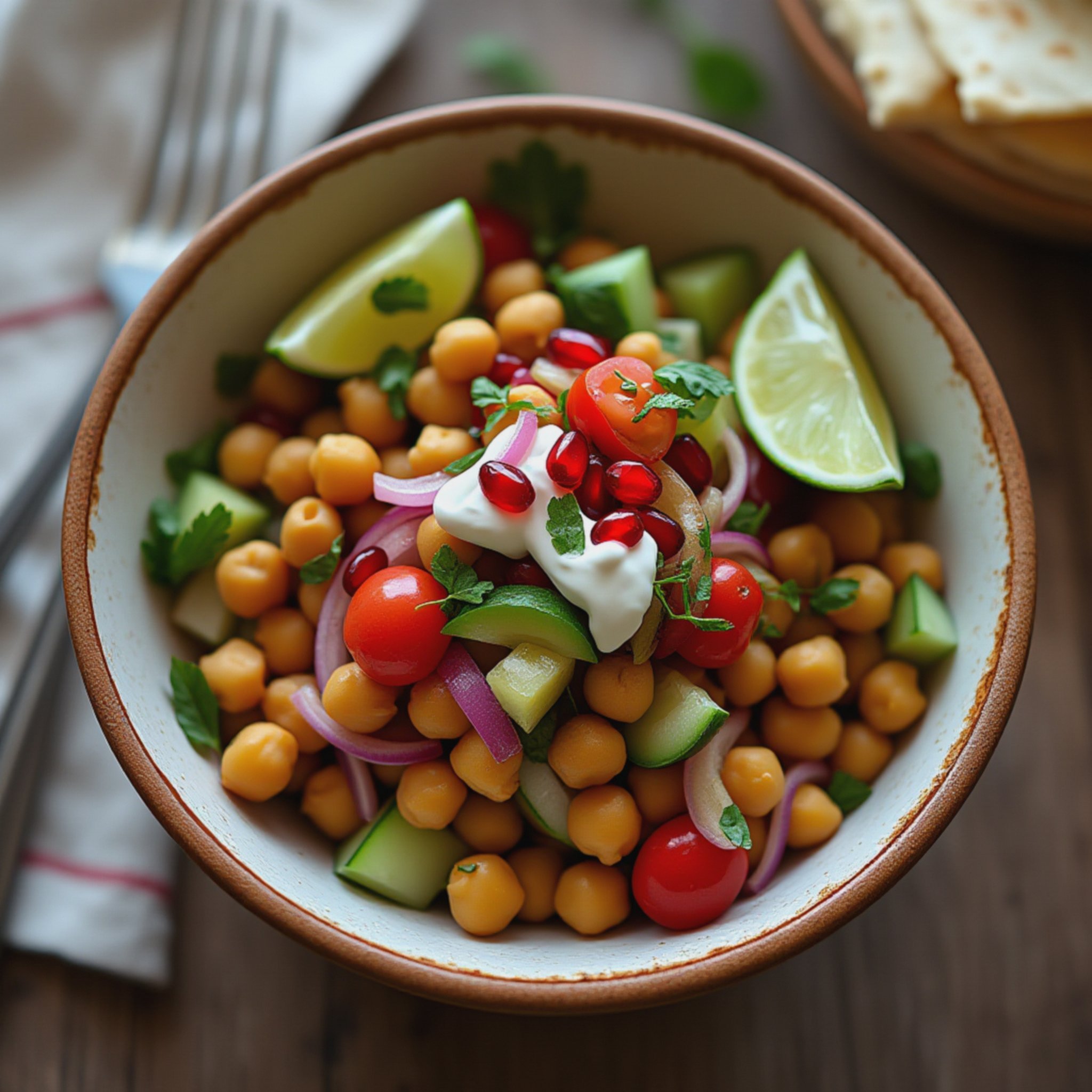 Chana chaat er full av kontraster – og det er nettopp det som gjør den så fantastisk. Kikertene er myke og mettende, rødløken gir et lite sting og crunch, tomatene tilfører sødme og saftighet, og agurken gjør retten ekstra frisk. Kryddersammensetningen er varm og aromatisk, med spisskummen og garam masala som bygger dybde. Jeg elsker hvordan en dæsj sitron eller lime setter prikken over i-en med syrlig friskhet. Når jeg topper med en skje yoghurt og drysser over mynte og granateplekjerner, føles det som et lite festmåltid i hver bit.