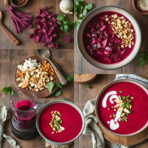 Kort Historie: Rødbetesuppe har vært en tradisjonell favoritt i mange kulturer, men tilsetningen av ingefær og varme krydder gir denne klassikeren en spennende oppdatering. Ingefærens varme og krydrede smak utfyller rødbetens naturlige sødme, mens krydderne løfter smaken til et nytt nivå. Denne suppen er perfekt på kalde dager når du trenger noe som varmer både kropp og sjel.