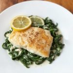 - Lag sausen: I samme panne, fres finhakket hvitløk til den er duftende. Tilsett matfløte, sitronsaft, timian og oregano. La sausen småkoke i noen minutter, og smak til med salt og pepper.