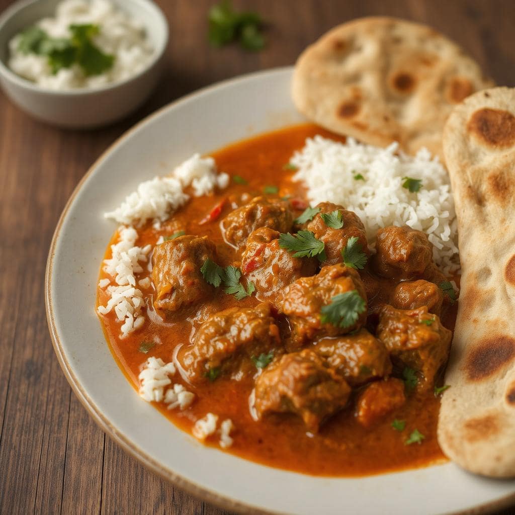 Lamb Rogan Josh har en rik, krydret saus med en silkemyk tekstur og en dyp rød farge fra kashmiri chili. Smaken er varm og aromatisk, med hint av kardemomme, kanel og nellik, mens yoghurten gir en mild syrlighet. Lammekjøttet er mørt og saftig, takket være langsom koking som lar krydderne trenge dypt inn. Jeg elsker hvordan retten balanserer varme og sødme, og hvordan sausen er perfekt for å dyppe naan eller blandes med ris.
