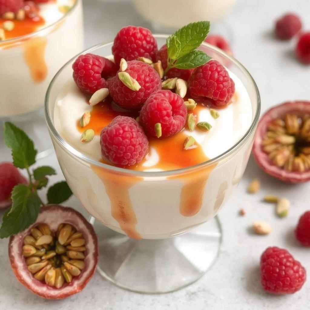 Pasjonsfrukten gir en deilig, tropisk friskhet som balanserer sødmen, og bringebærene tilfører en naturlig syrlig kontrast. Hvis jeg topper den med hakkede nøtter eller mørk sjokolade, får jeg også en herlig crunch. Jeg liker hvordan disse smakene spiller sammen og skaper en dessert som både er luksuriøs og lett.