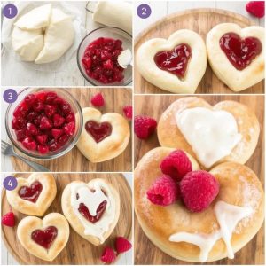 Bringebærfyllet gir en frisk kontrast til den søtlige bollene, og når jeg topper dem med en lett kremostglasur, får de en ekstra kremet og luksuriøs følelse. De små hjerteformene gjør dem enda mer sjarmerende og perfekte for en romantisk anledning.
