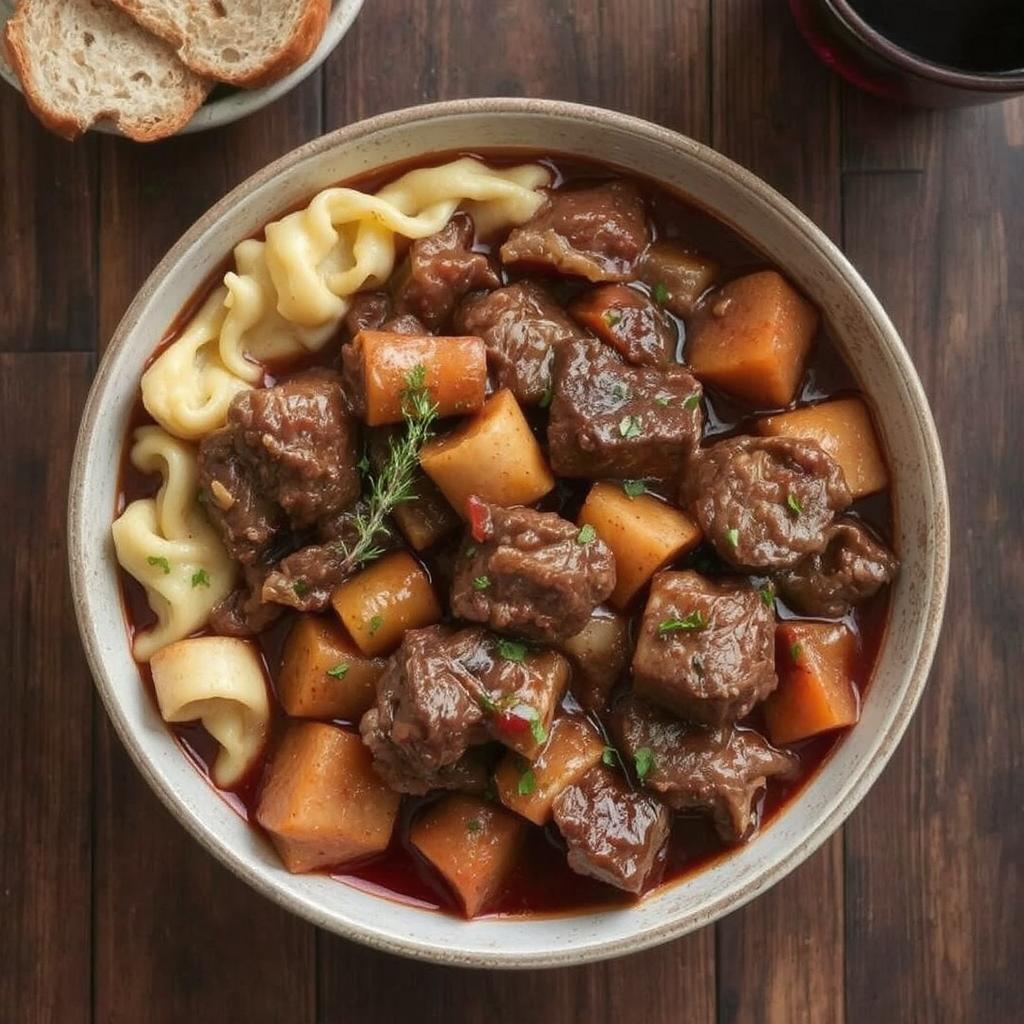 Jeg lager alltid denne retten når vi skal samle familien til en rolig søndagsmiddag. Det er noe spesielt med hvordan retten koker sakte mens man tilbringer tid med dem man er glad i. Mitt beste tips er å bruke en rødvin du selv liker å drikke – det gjør en stor forskjell for smaken. For en sunnere variant erstatter jeg deler av potetene i tilbehøret med sellerirot, og jeg reduserer mengden bacon for å gjøre retten lettere. Og husk, denne gryten smaker enda bedre dagen etter, så lag gjerne nok til å ha rester!