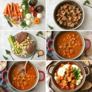 Denne kjøttgryten gir en balanse mellom kraftige smaker og delikate teksturer. Kjøttet blir mørt etter lang koketid og smelter nesten på tungen. Grønnsakene tilfører både sødme og fylde. Den rike sausen binder alt sammen. Urtene, som timian og rosmarin, gir en frisk aroma og en subtil dybde. Hver bit smaker hjemmelaget og gir en følelse av komfort og hygge. Jeg liker hvordan retten er både enkel og sofistikert.