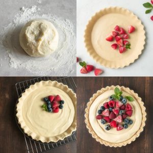 Pai med kesamkrem og bær er en moderne vri på klassiske dessertpaier. Denne retten kombinerer en sprø paiskorpe med en frisk og lett kesamkrem, toppet med sesongens bær. Kesam, som er en ferskost rik på proteiner og med lavt fettinnhold, tilfører en syrlig og kremet smak som balanserer sødmen fra bærene. Dette gjør paien til en friskere og sunnere dessertvariant. Jeg elsker denne paien fordi den er enkel å lage, ser fantastisk ut og smaker like godt til hverdag som til fest.