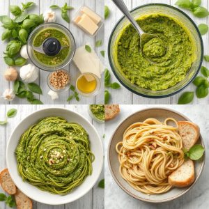 - Kjør pestoen: Legg basilikum, pinjekjerner, hvitløk og Parmesan i en food processor. Tilsett olivenolje litt etter litt mens maskinen går. Kjør til en jevn masse. Smak til med salt, pepper og sitronsaft for ekstra friskhet.