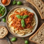 Pasta med tomatsaus og grønnsaker er en av de første rettene jeg laget da jeg begynte å utforske sunnere matlaging. Jeg husker at barna mine elsket det, og vi lagde alltid litt ekstra for å ha til lunsj dagen etter. Et lite tips jeg kan dele, er å bruke friske tomater om mulig, da de gir en ekstra sødme og friskhet til sausen. Jeg bruker alltid fullkornspasta for ekstra fiber og næring – og så liker jeg å toppe retten med ristede pinjekjerner for litt ekstra crunch.