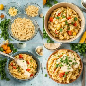 Denne pastasalaten har en kremet konsistens fra rømmen som balanserer den rike, aromatiske smaken av karri. Kyllingen er saftig, og de sprø grønnsakene gir en frisk kontrast. Jeg elsker hvordan alle ingrediensene harmonerer og skaper en rett som både er spennende og mettende.
