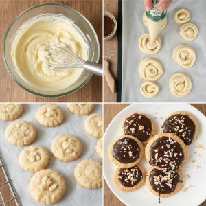 - Form Kakene: Bruk en sprøytepose eller skje for å plassere små porsjoner av deigen på et bakepapirkledd brett.