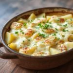 Potetgrateng med bacon kombinerer kremete poteter med sprø, saltet bacon og en gyllen, ostetopp. Fløten og smøret gir en luksuriøs tekstur, mens hvitløken tilfører en subtil aroma. Jeg elsker hvordan potetskivene trekker til seg smaken av baconet og fløten, og hvordan toppen blir sprø og boblende med smeltet ost.
