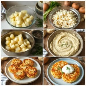 Kort Historie: Potetkaker er en tradisjonell rett i mange kulturer, ofte laget for å bruke opp rester av kokte poteter. Ved å tilsette løk og dill får disse kakene en frisk og aromatisk smak. Jeg elsker hvordan enkle ingredienser kan bli til en rett som både er mettende og full av smak. Disse potetkakene passer perfekt som tilbehør, småretter eller en lett middag.
