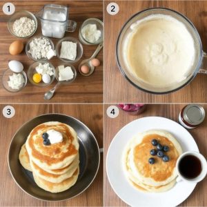 Disse pannekakene er utrolig myke og luftige, med en lett nøtteaktig smak fra havremel. Cottage cheese gir en delikat fyldighet som balanseres perfekt av en liten dash kanel og vanilje. Når de er ferdigstekte, får de en gyllenbrun overflate som gir en lett sprø kontrast til den myke innsiden. Smaken er mild og naturlig, og toppingen av friske bær tilfører en saftig sødme. Hver bit er en nytelse, og duften av pannekakene på stekepannen er rett og slett uimotståelig!