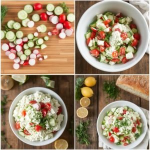 Jeg elsker å lage denne cottage cheese-salaten, spesielt når jeg har gjester. Den er alltid en suksess på bordet, enten som en forrett eller som tilbehør til grillmat. Et tips fra meg er å bruke sesongens grønnsaker for ekstra friskhet. Noen ganger liker jeg å tilsette avokado for en rikere tekstur, eller en håndfull ristede nøtter for litt crunch. Jeg husker at jeg første gang serverte denne til venninnene mine, og den ble raskt en favoritt – spesielt fordi den er så sunn og enkel å lage.