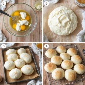 Jeg synes bollene er fantastiske fordi de kombinerer en myk og saftig kjerne med en lett sprø overflate. Cottage cheese gir en delikat, kremet følelse til deigen, mens grovmel tilfører en tilfredsstillende tyngde. Når du tar en bit, merker du en subtil syrlighet fra cottage cheese, som balanseres perfekt med sødmen fra honningen. Kardemommen gir en varm og aromatisk undertone som gjør hver bolle ekstra innbydende. Jeg elsker å spise dem nylaget og fortsatt lune, med litt honning dryppet på toppen eller med smør og en skive brunost.