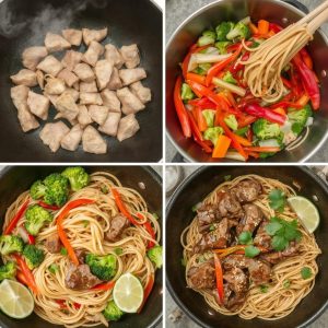 Rask wok med lam og nudler er en smakfull og hurtiglaget rett som kombinerer asiatiske smaker med saftig lam og sprø grønnsaker. Denne retten er perfekt for travle hverdager når du ønsker noe næringsrikt, velsmakende og enkelt. Wokking på høy varme sørger for at grønnsakene beholder sin sprøhet og naturlige sødme, mens lammet forblir mørt og saftig. Retten knytter alt sammen med en soyabaserte saus med hint av ingefær, hvitløk og sesamolje, som gir en balansert og autentisk smak.