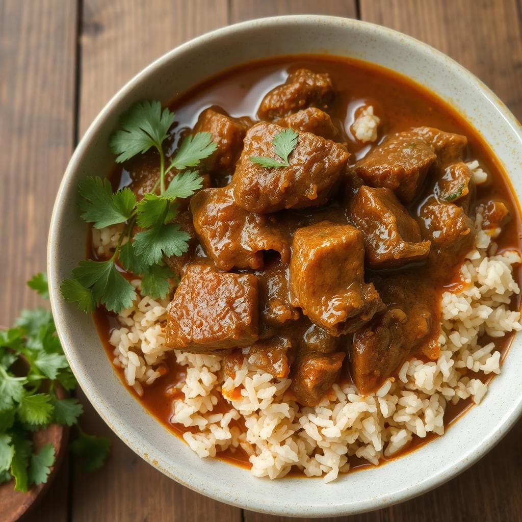 - Server: Server gryten over fullkornsris eller quinoa, og topp med frisk koriander. Tilsett dampede grønnsaker som et balansert tilbehør.