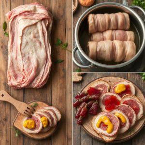 - Pressing: Legg et lokk eller en tung plate over kjøttet, og press med en vekt. Sett formen kjølig i minst 12 timer for å sette seg.