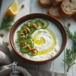 Rør inn friske mynteblader og gjerne litt sitrontimian for ekstra friskhet.
